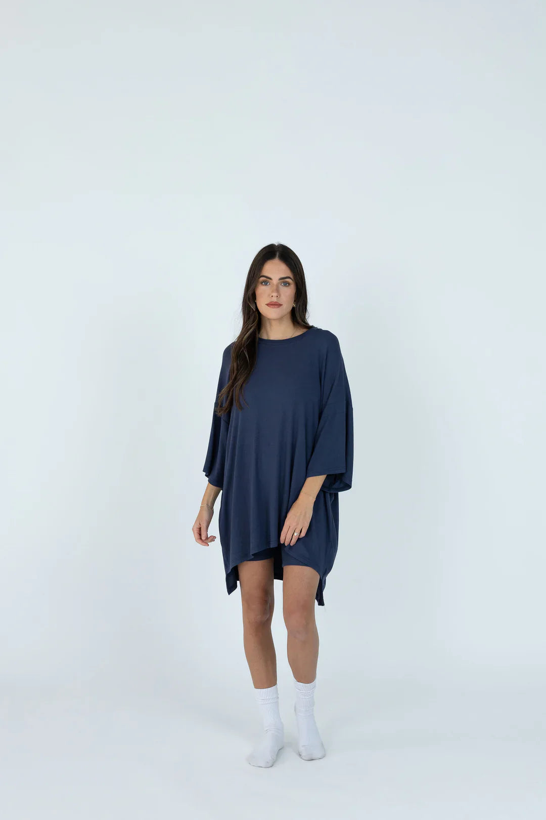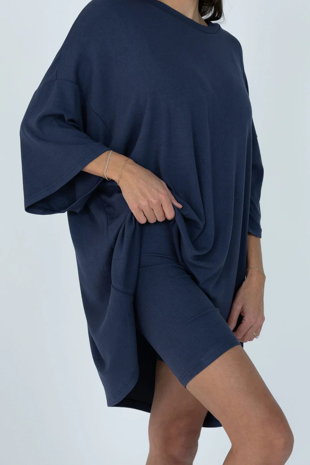 You ask and you shall receive!!! IT'S BACK AND IN A NEW COLOR! You will be dressing this up for every occasion and dressing it down to wear around the house. This set was made for EVERYBODY. This oversized boyfriend tee comes with a pair of matching biker shorts. The material is soft, very stretchy and ribbed. The best part about these biker shorts is they do not cut into your waist, they lay flat. They are tight enough to hold you in, but loose enough to feel relaxed and comfortable. The relaxed fit of this outfit has made it a 10/10.