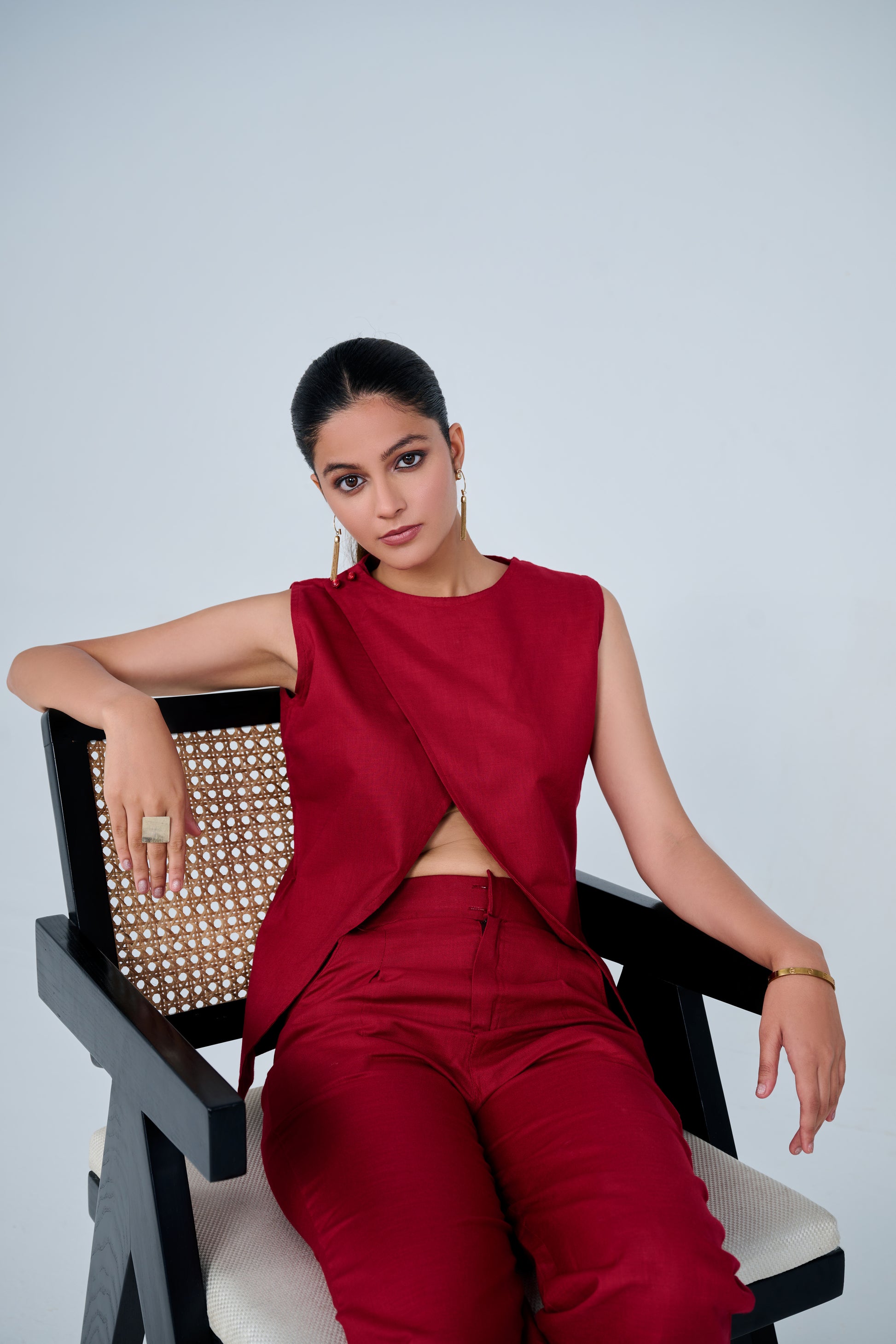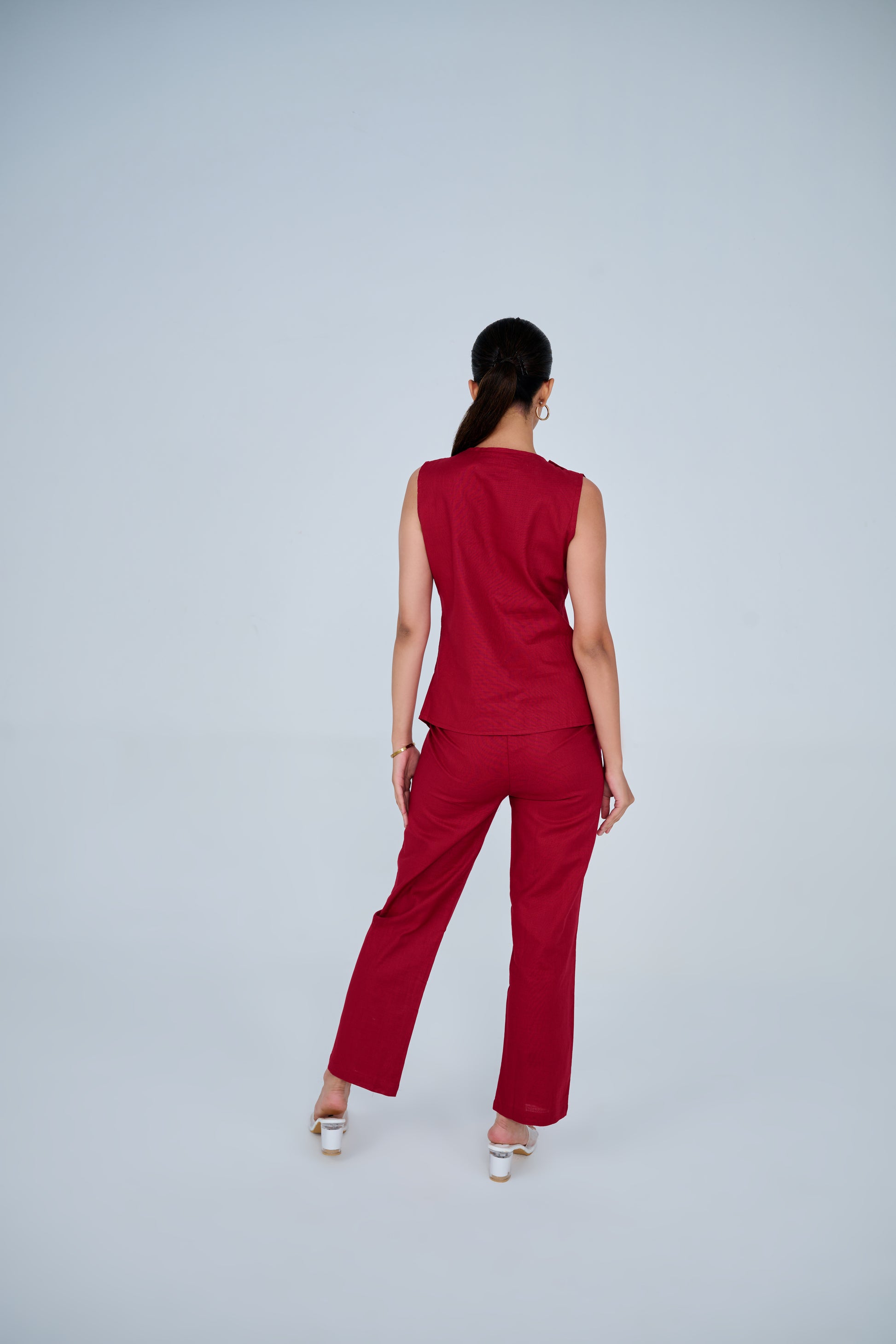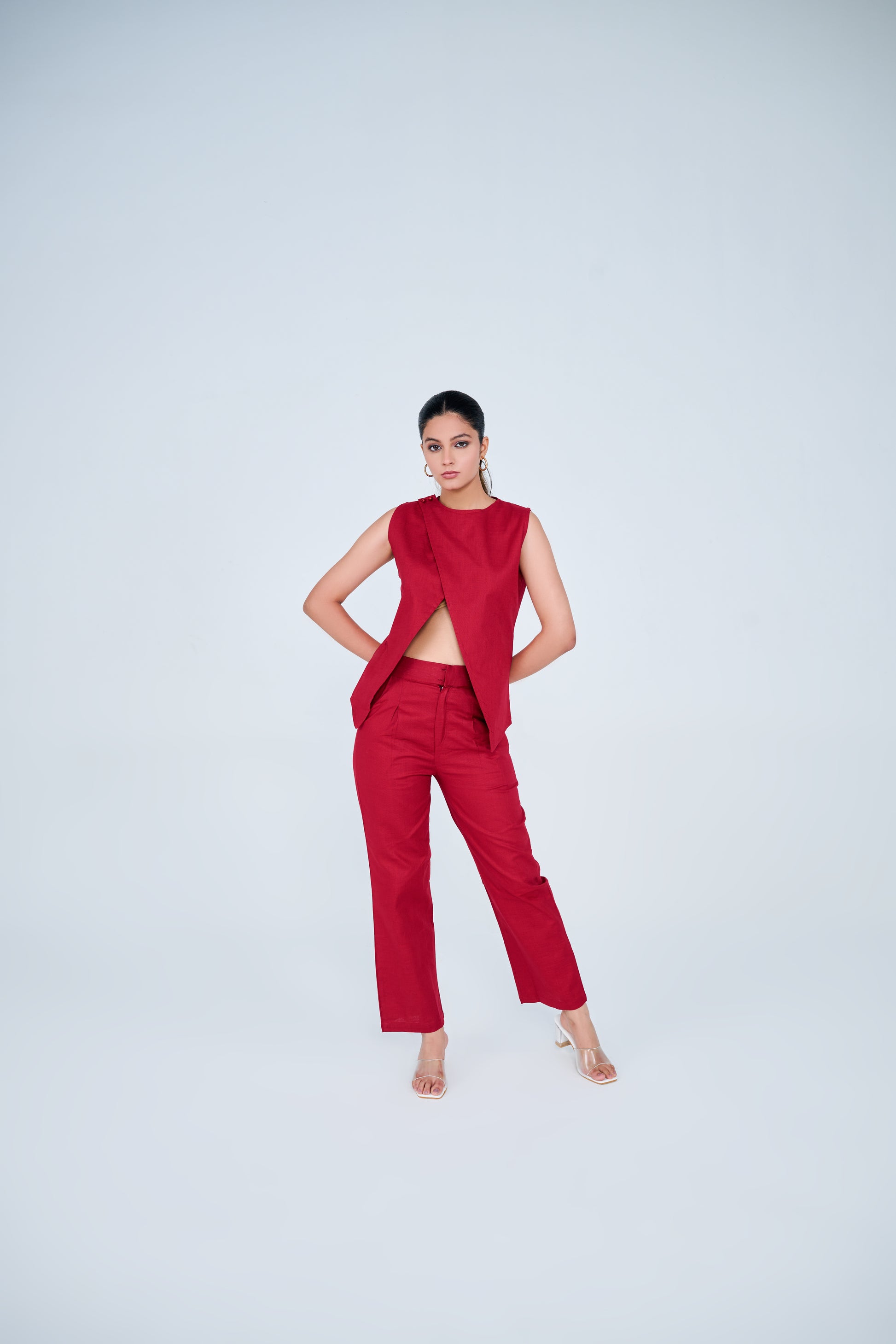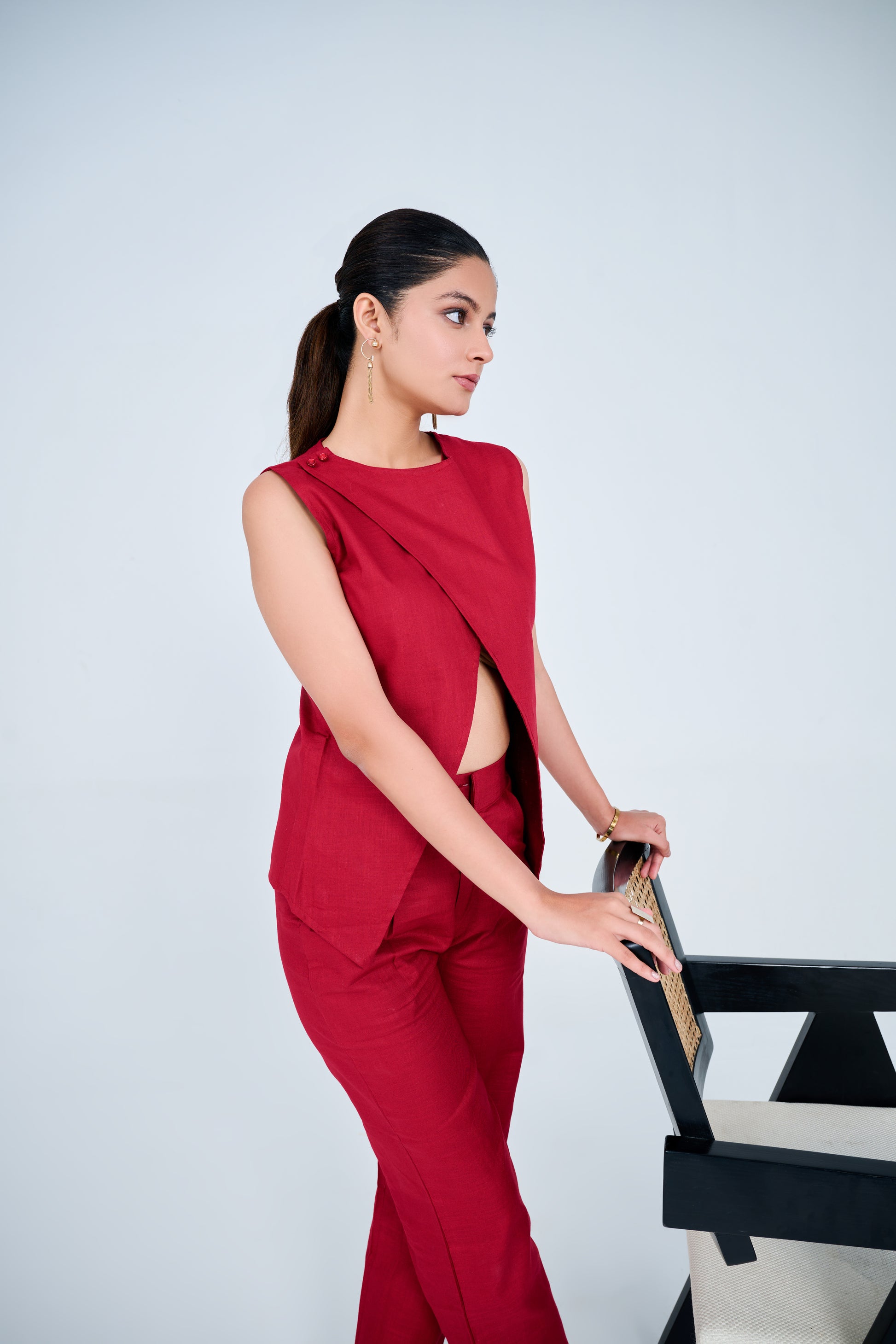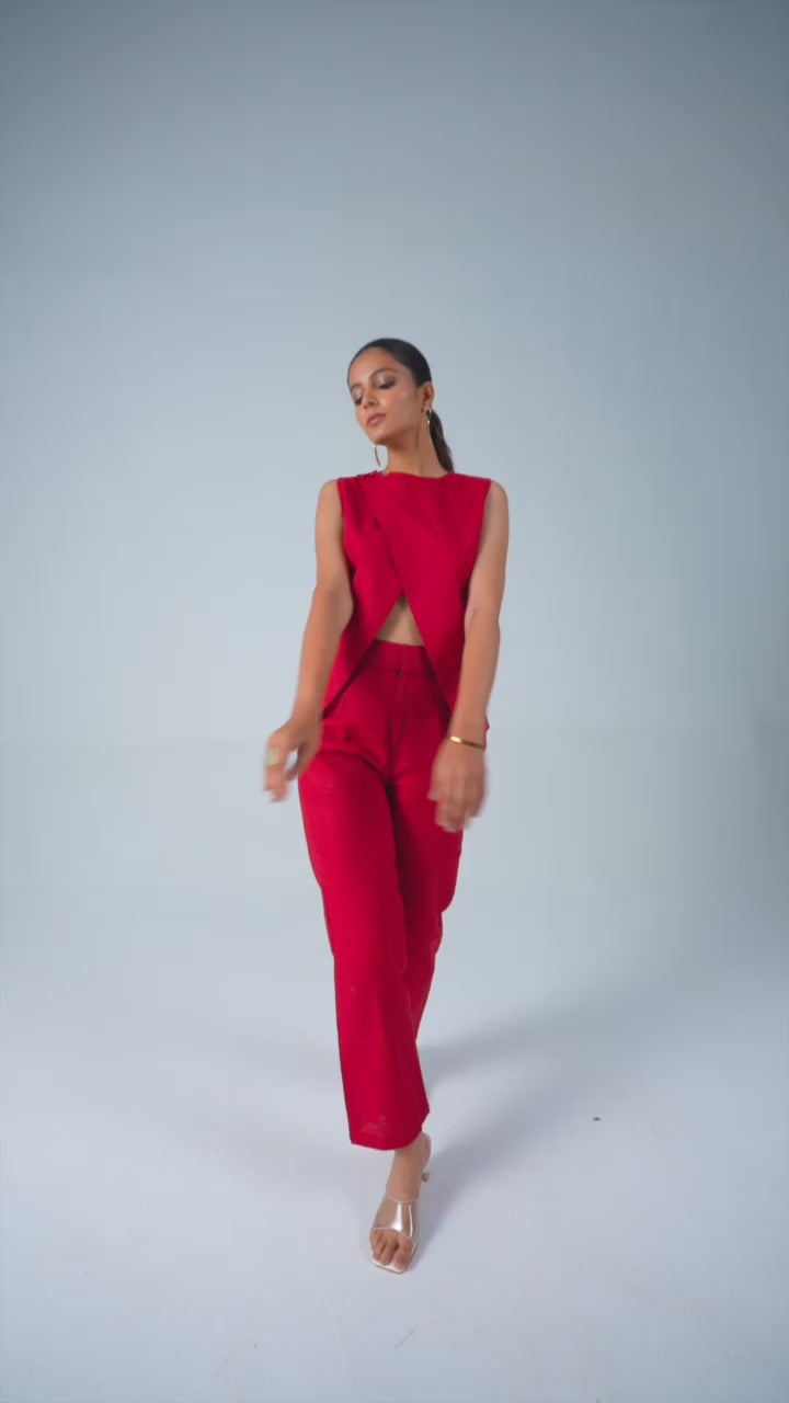 Cotton Blend Slit Formal Co-ord Set ( Red)