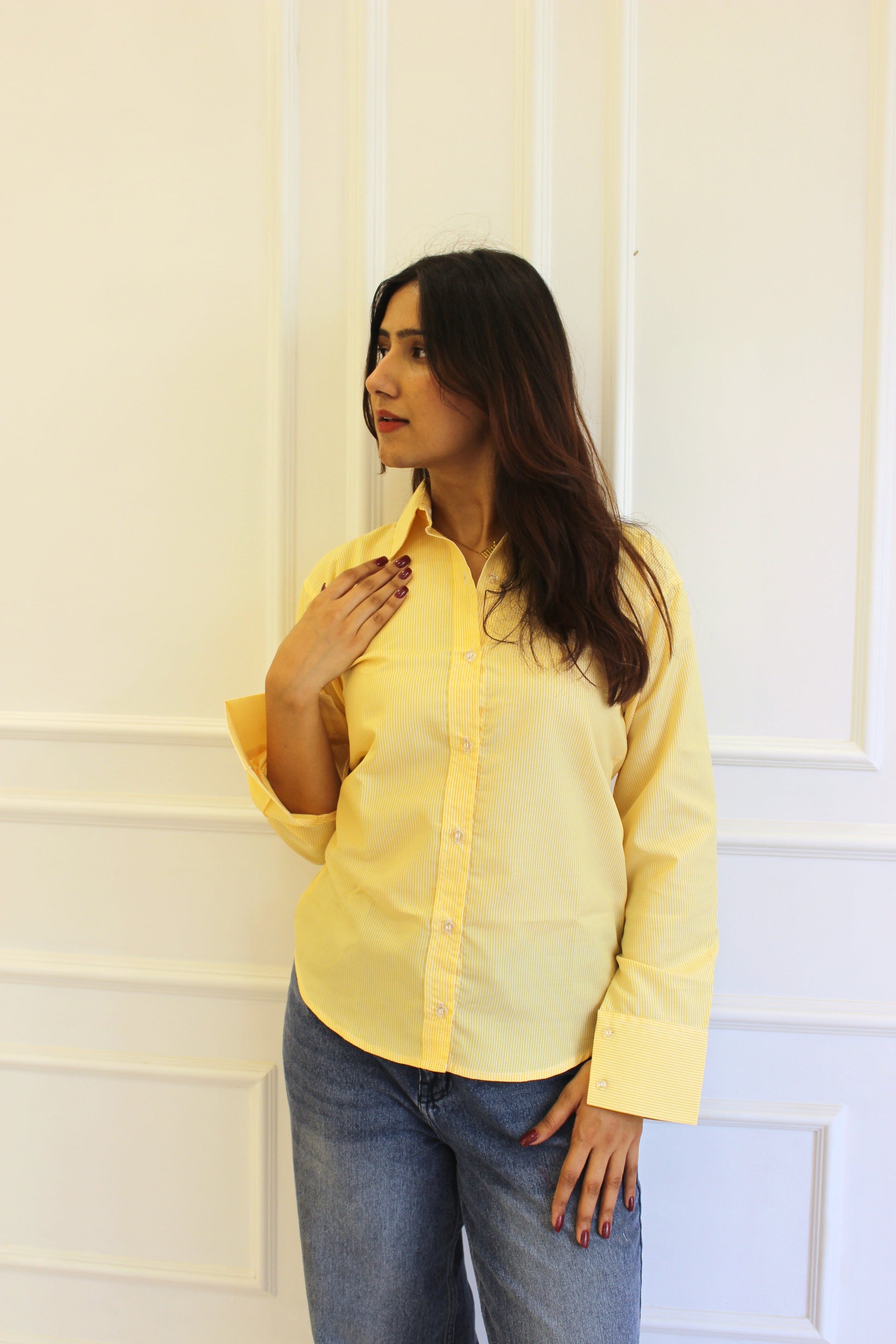 This striped shirt is designed to strike the perfect balance between formal elegance and semi-casual ease. Featuring crisp, clean stripes and a tailored fit, it adds sophistication to your office look while staying relaxed enough for after-hours plans. Crafted from breathable fabric, it keeps you comfortable all day long. Pair it with trousers for a sharp professional vibe or with denims for an easygoing weekend look. - Shirt Collar