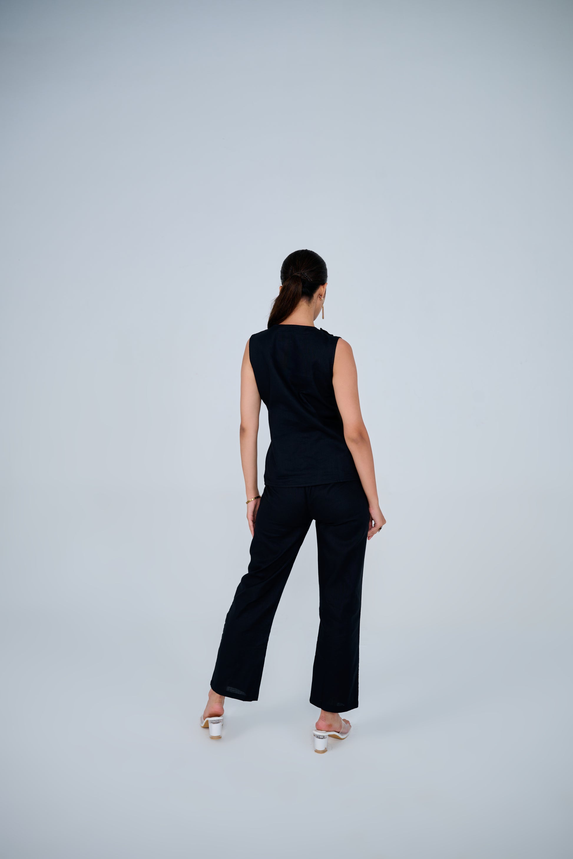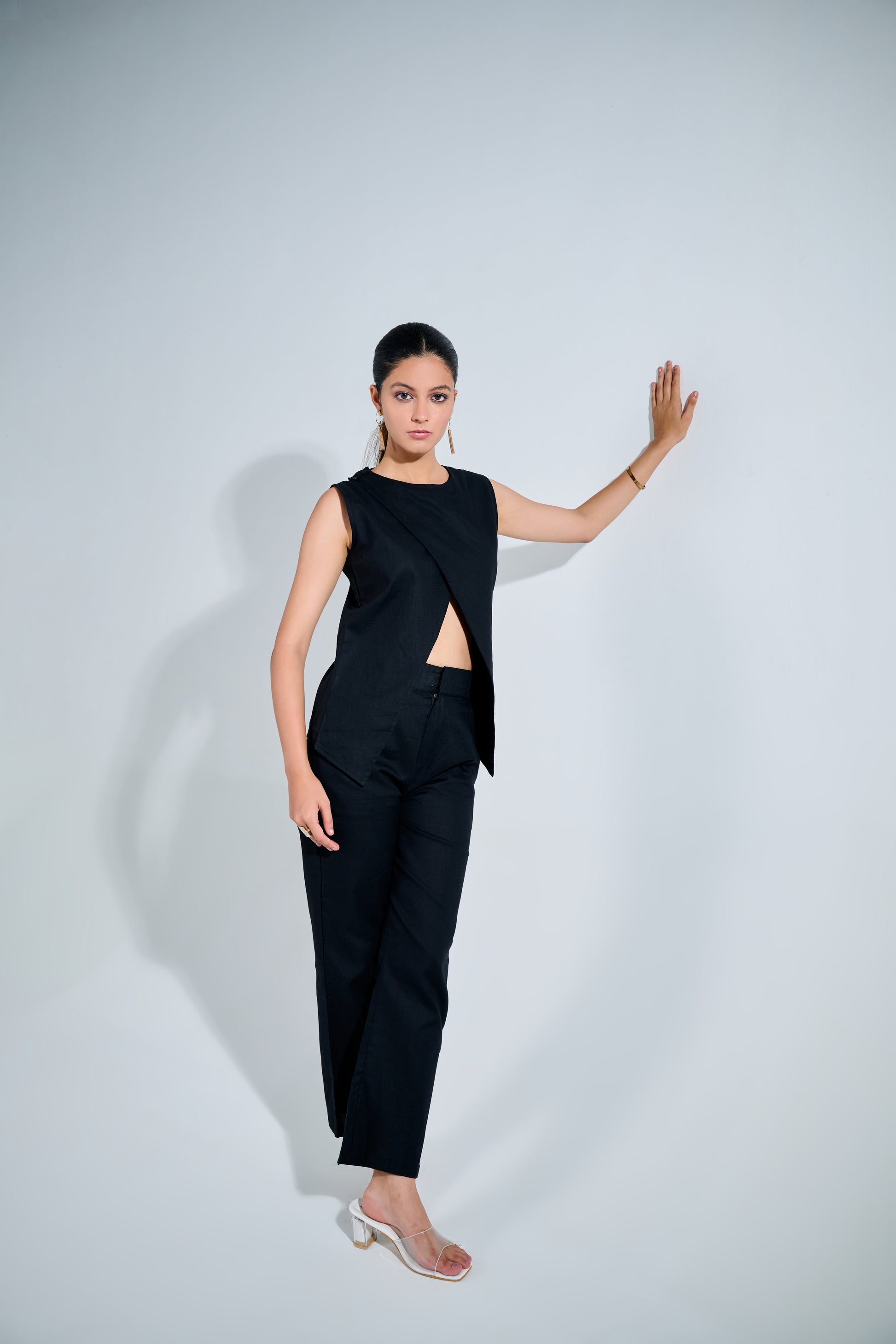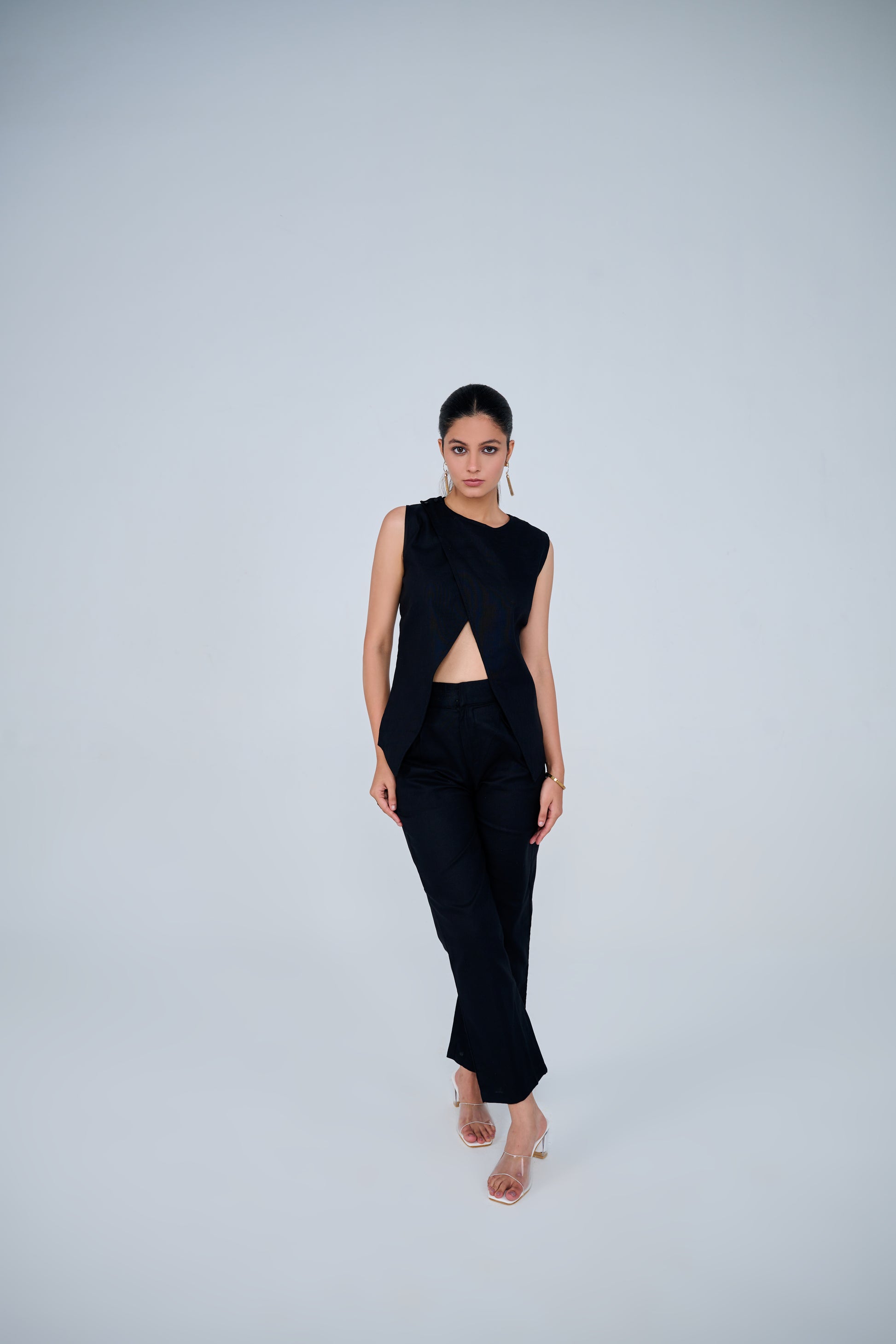 Cotton Blend Slit Formal Co-ord Set ( Black)
