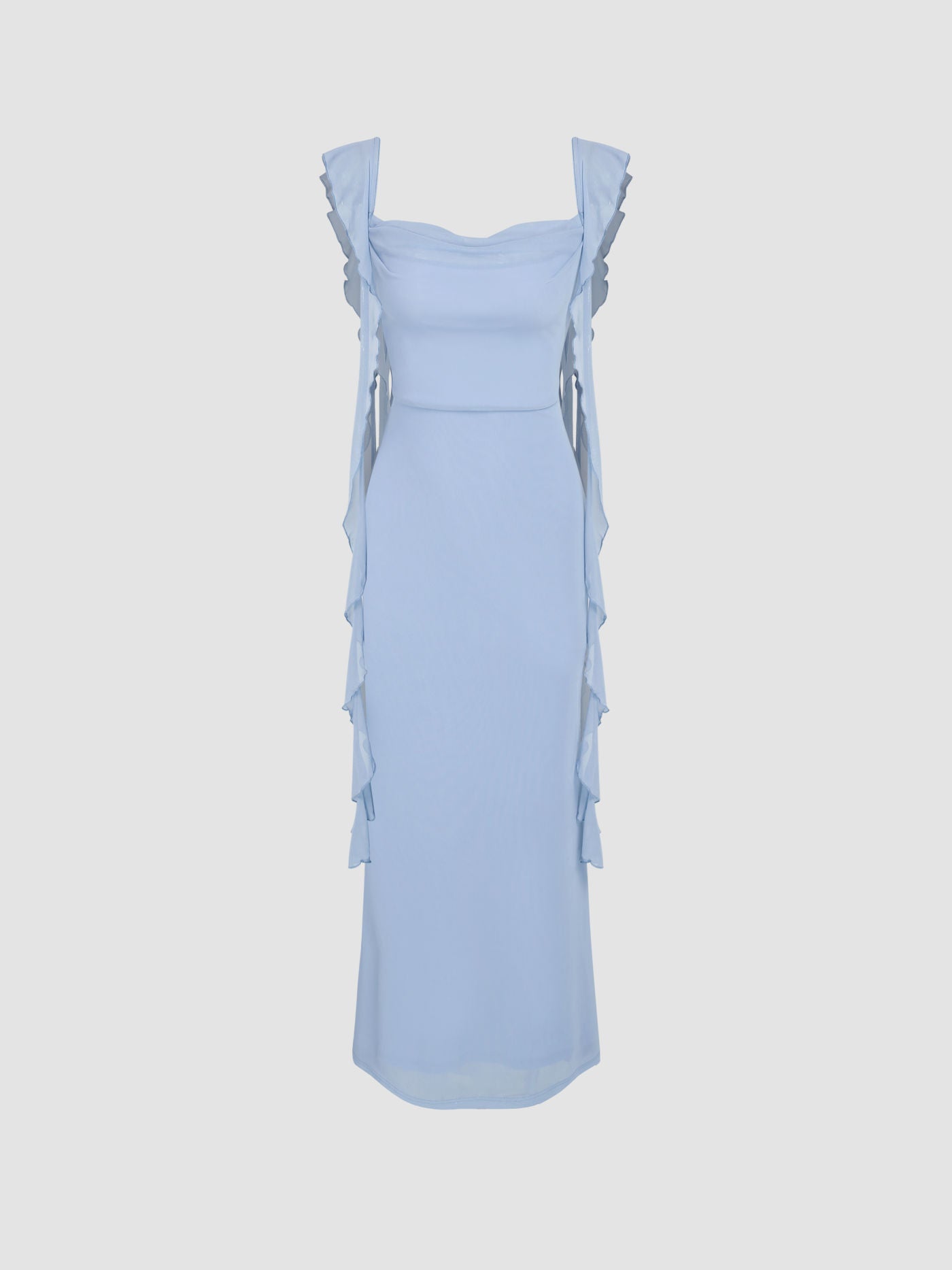 Mesh Ruffle Hem Maxi Dress Blue