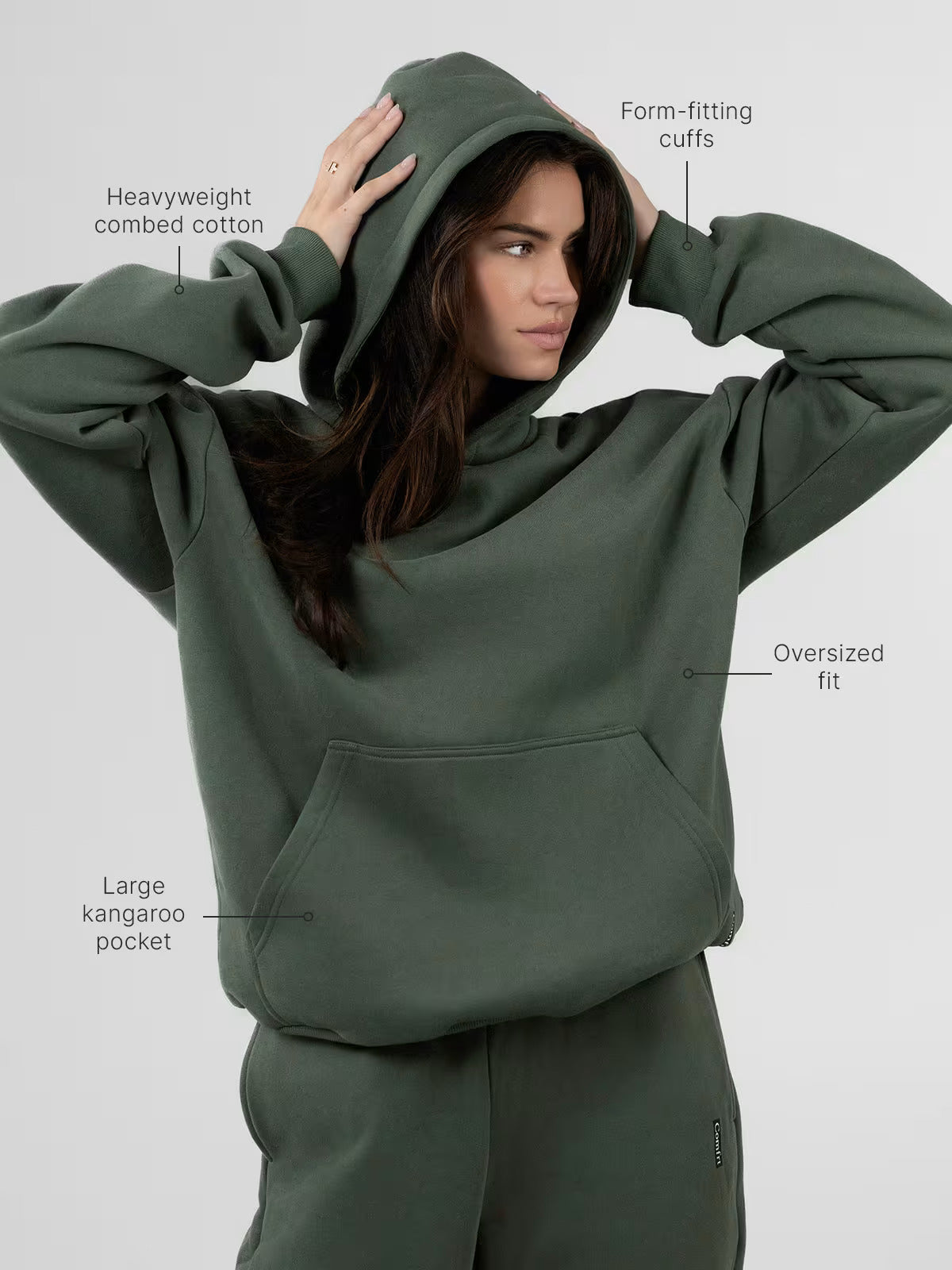- Hoodie: Oversized hood, kangaroo pocket, heavyweight fabric, and enzyme-washed softness.